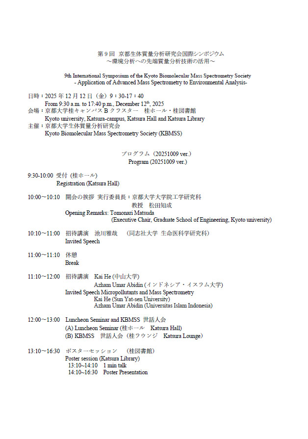 第9回 京都生体質量分析研究会国際シンポジウム プログラム